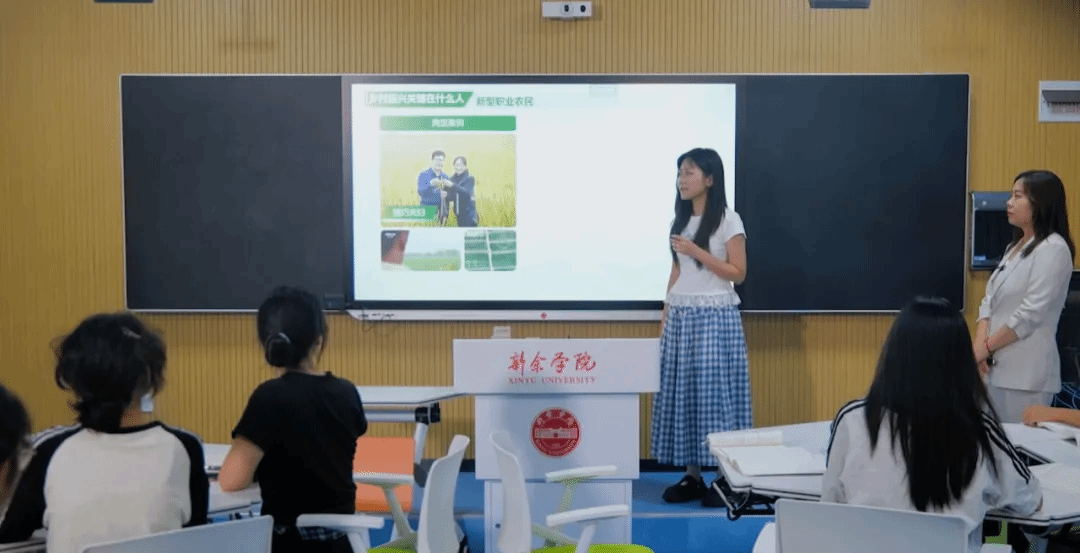 “师生同台”教学同样亮点频出。在《习近平新时代中国特色社会主义思想概论》课程中,刘思疑老师带领学生以《乡村振兴关键在人》为主题,通过“理论阐释+案例故事+现场互动”的形式,层层剖析“人”在乡村振兴中的核心作用。学生们化身“故事讲述者”,带来了一个个滚烫的实践案例:有的分享“90后”村支书带领村民发展乡村旅游的经历,有的讲述农业博士扎根田间推广智慧种植技术的故事,还有的结合家乡变化,细数返乡青年用电商打开农产品销路的创新实践。这堂别开生面的思政课,让师生们深受触动。“以前总觉得乡村振兴离自己很远,现在才明白,每个人都可以是参与者、贡献者。”学生谢宗霖说,他计划今年暑假回到家乡,用所学的新媒体知识帮村民运营短视频账号,推广家乡的特色农产品。